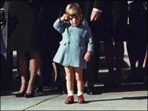 The coffin was draped with the American flag and I imagined the President’s body inside, stiff yet jiggling in the dark under the lid, rolling along behind magnificent white horses, with men in dark uniforms sort of bouncing atop their backs. The hush of the huge crowd staring in silence could almost be heard through the television. On the steps outside the cathedral, Jackie leaned over and whispered something to John-John. And then the little boy saluted. He was only three, a year younger than the twins.
