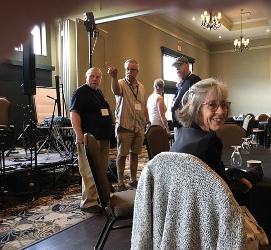 The other person in this photo is Ray Hudson, friends with all, who carried around the lenses, the black heavy camera, and throughout Friday’s activities, stared close up, at everyone’s faces as they read, as they performed. He had the closest look to capture us and in doing so, celebrate us. He had been scheduled at the gala Saturday event to perform as M.C. How long after this photo was taken did a stroke collapse him in the middle of everything?Throughout the rest of the festival, he just held on in intensive care. Everyone who knew him whispered, sorrow and dread and love in their voices. Is he still with us?