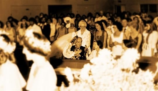Is this the story of a wedding? A family? Our grandmother tells her version, painting a rich tableau of a big, messy family making a united effort to create a wedding for their sister, in spite of family tragedy. Frozen turkeys, baby’s breath, chocolate groom’s cake and too many guests are featured alongside the usual excitement of a beautiful bride.