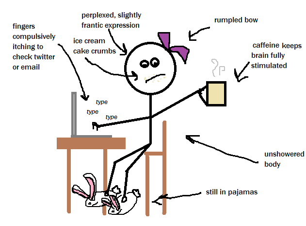 I learned a lot of my self-discipline when I finished my degree long-distance due to health problems that caused me to drop out of school. So many people said to me, "I could never do that. I could never do my homework and write my papers if I didn't have the structure of class." But you CAN. It's a skill I learned--I wasn't born with baskets of willpower and discipline--and it came in handy again and again after I started seriously working on writing novels.