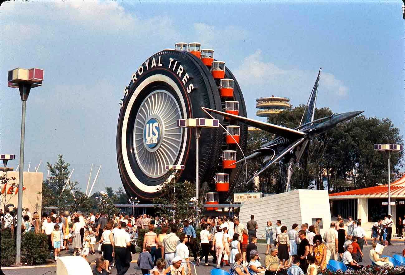 The original U.S. Royal Tire exhibit was a Ferris wheel attraction at the New York World's Fair of 1964/1965, held in Flushing Meadows Corona Park in the borough of Queens. The fair was open for two six-month seasons. In 1964, it was open from April 22th until October 18th, and in 1965, the dates were April 21st until October 17th.