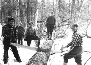 With the invention of the steam-powered circular saw in the 1850s, the lumber business ramped up production. Fortunes were made by enterprising men who had vision and deep pockets. They bought large tracts of private and government land and were quickly dubbed Lumber Barons. They owned the saw mills and set up the system of lumber camps that made more than a few men rich. The "shanty boys" as the owners called the lumberjacks did the heavy lifting. After a harsh winter, they could walk out of the forest with several hundreds of dollars--big money in those days--only to be targets of robbery or worse. The lumber business attracted a tough crowd in and out of the forest like any boom town industry would.