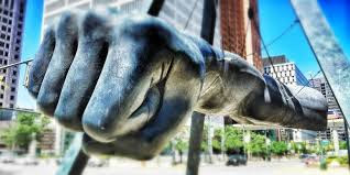 In his professional boxing career, Joe Louis won virtually every boxing award there is and was awarded the Congressional Gold Medal posthumously in 1982. The City of Detroit honored Joe Louis with a monument on October 16, 1989. The sculpture was sponsored by Sports Illustrated magazine and the Detroit Institute of Arts. When drivers look left at Woodward Avenue from eastbound Jefferson Avenue (now a No Left Turn), they are confronted with a colossal fist and forearm suspended from a triangular superstructure--a testament to the regard and respect Detroiters hold for their hometown hero.