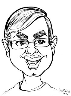 Five minutes later, he handed me the drawing you see above. I was really pleased with it, though I don't think I'm that gleeful in real life. Of course, that's why it's called a caricature.