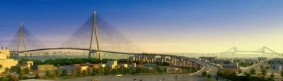 The new bridge will touchdown in Del Ray just north of Zug Island and only two miles south of the current international bridge which will continue to serve the general public of both countries. The bridge will conveniently link north/south I-75 in Michigan with east/west Highway 401 in Windsor.