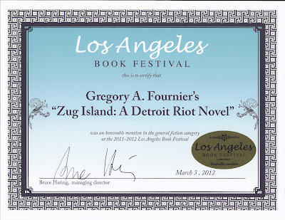 In February, I was surprised to discover that I had received another award for Zug Island, an Honorable Mention from the 2012 Los Angeles Book Festival competition. These awards have motivated me to forge ahead with my next writing project, The Water Tower, about the John Norman Collins murders in Michigan of the late Sixties.