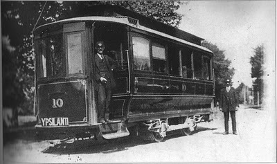 While doing some research on Washtenaw County, Michigan, for my next book - The Water Tower - I came across an interesting tidbit of history about the Ypsi-Ann trolley which linked the campus of Michigan State Normal College in Ypsilanti with the campus of The University of Michigan in Ann Arbor some ten miles away.