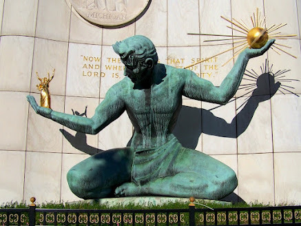 For the front cover, I chose a visually striking closeup view of The Spirit of Detroit by gifted Detroit photographer Chris Ahern. Searching for information about the building of the sixteen foot bronze statue and its dedication on September 23, 1958, I came across this color film I have linked below that tells the whole story.