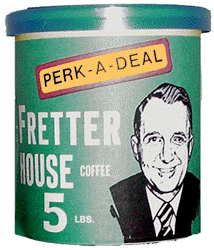 An unidentified Fretter employee revealed to a Detroit Free Press reporter, "Fretter gave away about 200 pounds of canned coffee a month costing about $500. When coffee prices rose, Fretter ordered one-pound cans of coffee with the label Fretter's House printed on them listing the weight as five-pounds. Somehow, Fretter got away with it. The cans became gag items that most customers were good-natured about. My guess is these short-weight coffee cans would be valuable collectors' items today if any have survived.