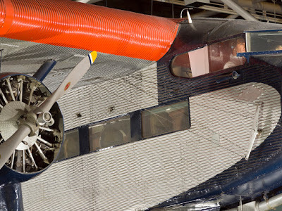 The Ford Tri-Motor was a combination of old and new technologies. As was common in early wooden and canvas airplanes, the engine gauges were mounted onto the engine struts outside the cockpit, and the rudder and wing flaps were controlled by steel cables mounted on the exterior of the airplane. The plane soon developed a reputation for ruggedness and versitility. It could be fitted with skis or pontoons for snow and water takeoffs and landings. The seats could be removed to carry freight.