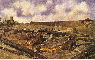 Pontiac was forewarned of the attack by sympathetic French settlers. His warriors set up several defensive embankments and hid behind the natural cover and wood piles. As the soldiers quietly marched toward them, the barking dogs of French settlers heralded their approach.