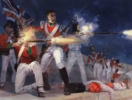 At 2:00 a.m., a raiding party of 160 Redcoat infantrymen marched toward the Indian encampment two-abreast carrying rifles with fixed bayonets along a road now known as East Jefferson. Two oar-powered flatboats mounted with small cannons followed the soldiers along the shoreline for added firepower.