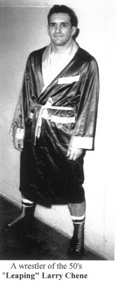 Shortly after, Chene shut down his struggling trucking business and learned the secrets of the squared circle. Chene wrestled in small, local venues five or six times a week for different small promotions while he developed his craft. Then in 1953, he signed a six-week contract to wrestle in Texas. He liked the steady work and the money. Chene had a growing family to provide for, so he stayed for six years developing his high-flying, Leaping Larry Chene persona.