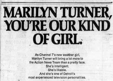 After seeing a newspaper ad referring to her as a weather girl, forty-one-year-old Turner let WXYZ management know she bristled at the weather girl label. "I don't believe any woman over 21 should be called a girl. You don't call a man a weather boy." The ad ran only once.