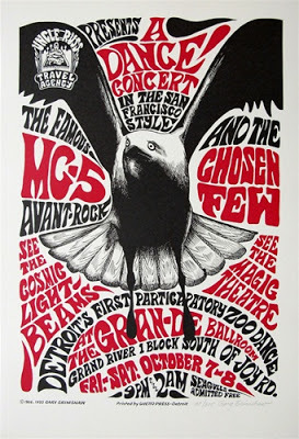 If Crumb was the artist in residence for the Fillmore West in San Francisco, Gary Grimshaw and Carl Lundgren were the artists in residence for the The Grande Ballroom. Their original graphic art became famous and was featured in the Grande's weekly handbills which were produced in large numbers and widely distributed. Today, original Grande poster and handbill art attracts collectors, especially if it's signed by the artists or featured band members.
