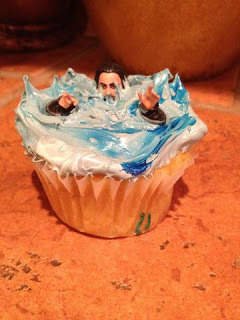 Now that you know who's who, it's time to reveal the beautiful cupcake my hubby made in honor of Jacquelyn's book. Adam is a water demon. He controls water, and he can even turn into water, which, you have to admit, is a pretty awesome ability to have. My hubby created a cupcake showing Adam in mid-transformation. Without further ado, let's reveal the cupcake and dive into the interview!