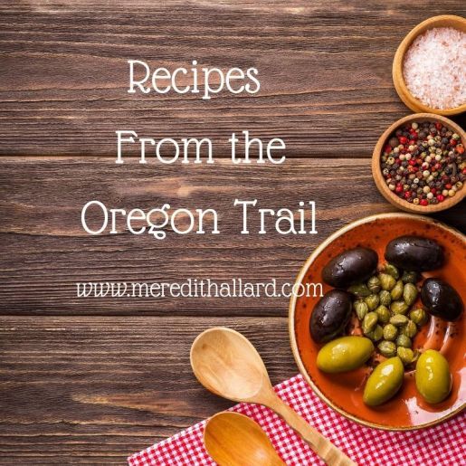 One of the first things I did when I began researching life on the Oregon Trail was look up the recipes they cooked on the trail. Since they had limited ingredients and limited supplies to cook with, the food had to be simple to make yet still filling. Sometimes the men were successful in their hunting and they would bring back meat. Bacon, potatoes, and corn were important staples while molasses was often used as a sweetener. Flour was brought along for the journey, as were beans and rice since they were easy to store in the wagons. Bacon fat and lard were used as flavorings. Other popular dishes cooked along the trail were bison, oxtail soup, vegetable pie, dumplings, and various cakes and pies.
