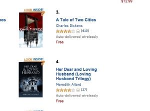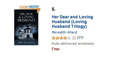 Best-selling certainly sounds cool, especially since I’m writing this in the glow of some good Amazon news: Amazon set Her Dear & Loving Husband to free, and as of my last check, it was #5 on the historical fiction list, #12 for literary fiction, and #190 overall. If you have a Kindle, by all means, enjoy a free copy. I even took a screen shot because I was so excited. After all, writers write because we want our stories read, and being a best-selling author means a lot of people have read your story—or at least bought it—or downloaded it—or whatever. It means a lot of people, okay?