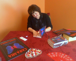 Blog Blitz Day grand prize: By going to my blog today, following and leaving a comment and email there, you’ll be entered in my gift basket drawing to win a signed paperback copy of Servant of the Goddess, a Cara Mia t-shirt, posters, a pen, a key chain and other vampire-themed goodies.
