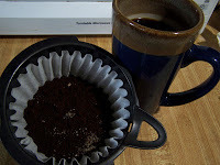Not all of the seeds were ground to my satisfaction, but I spared a bit to sprinkle into my cup of coffee while I waited for the new pot to brew. And wow. I like doing it that way so much better. The freshly ground seeds are so much more flavorful than the store-bought variety. I definitely have to get a french press, because I think I'll hold off on using freshly ground seeds in with the coffee grounds until I can guarantee the cardamom oils won't just get filtered out.