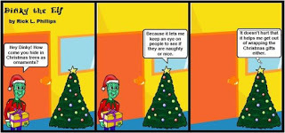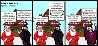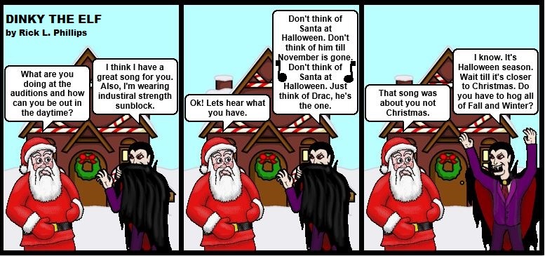On my Facebook sites I have been posting a comic strip about my character and book Dinky the Elf. Starting today I am also going to post them here. This is the Facebook site where they start from https://www.facebook.com/DinkyTheElfTheBook/ You can get the children's book Dinky the Elf at any online store and of course on Amazon.com https://www.amazon.com/Dinky-Elf-Rick-L-Phillips/dp/0692299971/ref=as_sl_pc_ss_til?tag=onmymind-20&linkCode=w00&linkId=KR5ND2665T44GBHE&creativeASIN=0692299971
