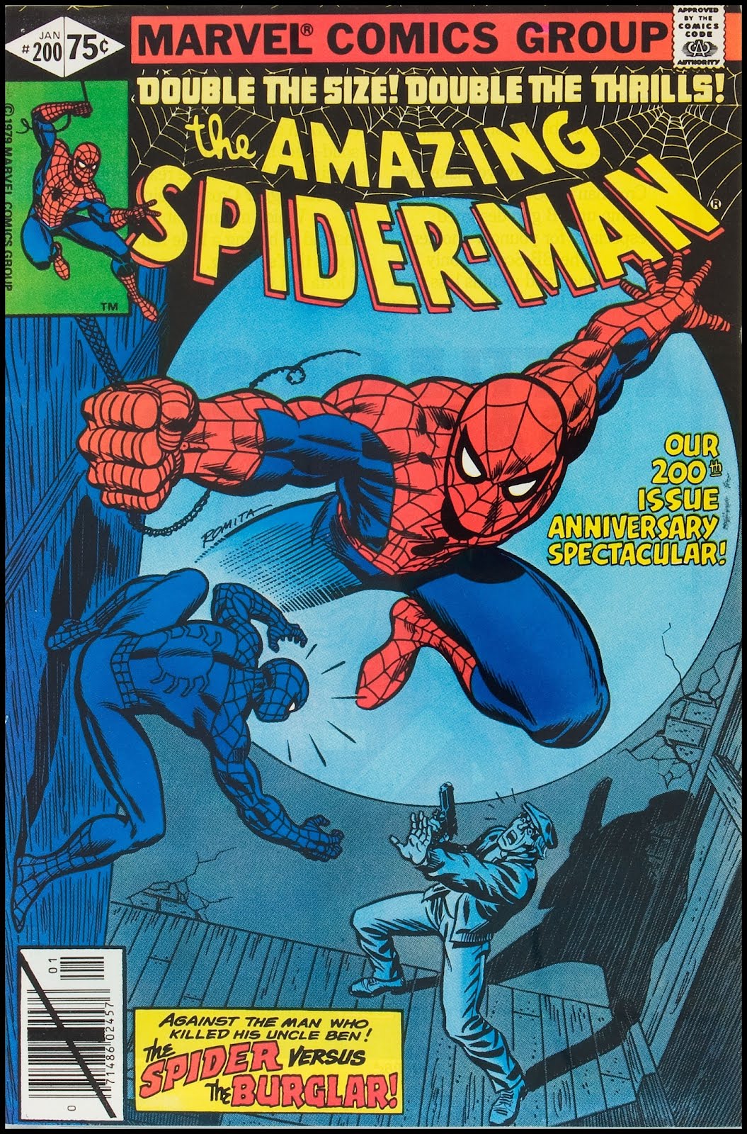 Here are 10 covers from the Amazing Spider-Man that show the image of Spider-Man looming large in the background as he cast a shadow over the action on the cover. Don't forget that you can also get the short story book With Great Power that shows how Spider-Man and his motto loom large for other people on decisions they have to make in life. Get it at this Amazon link https://www.amazon.com/With-Great-Power-Ron-Athey/dp/1300570261/ref=tmm_pap_title_0