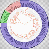 Just so you know, the green part of the ring represents the archaea group. Archaea are single celled organisms without a true nucleus. The pink part of the ring is the group called "eukaryota." That's us, by the way. Beings with true nucleated cells. Eukaryotes include all the common animals that we know, all the common plants we know and tons of animals and plants that are not familiar at all, such as amoeba, fungus, etc. Then there's the purple-blue part of the ring. Whoever is in this group is blessed indeed for they appear to be taking over the world. That, my friends, is the bacteria group, a prolific bunch.