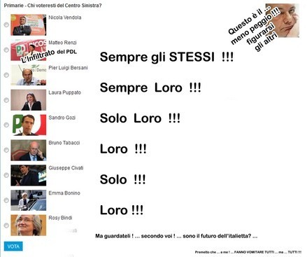 Se riuscirai … MAI ! … ad eliminare … TUTTI !!! … e … dico … TUTTI !!! … i partiti e partitucoli italiesi … Beh! … ALLORA AVRAI VINTO !!! … Good Luck ! …
