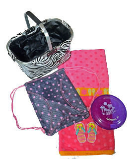 Beach towel, beach bag, frisbee, and one of my favorite basket/totes from Sister Belles (I decided this was tons cuter than a cooler. The frisbee says Fairhope, AL on it. That is not only where I live but where the Breathe book trailer was filmed)