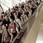 To our surprise, the stream of people turned and went back up the escalator to the second floor again. We looked around and tried to figure out what was going on. Then we saw the reason why. In order to exit the terminal, we needed to be on the opposite side of a fenced area that separated the station into entry and exit areas. We had just descended into the entry area and now needed to re-track our steps so that we could get to the exit. In following the crowd, we had assumed that they knew the right way to go, when in fact they led us in the wrong direction.
