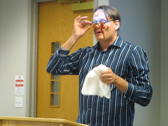 Brandon Spars then talked about how he taught the Song of Roland to his class. It involved using a tin foil horn as a prop as he read the classic poem and then squirting ketchup on his face to simulate Roland's temples bursting. I am sure none of his students will forget that day's lesson.