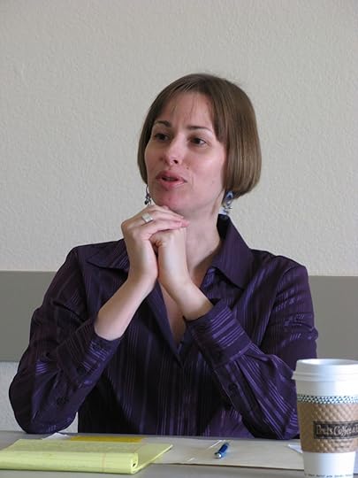 She has returned several times to our county to be a speaker at Redwood Writers meetings and workshops. Here is a photo of her from the 2009 Winter Editing Workshops where she discussed the importance of writing powerful scenes.