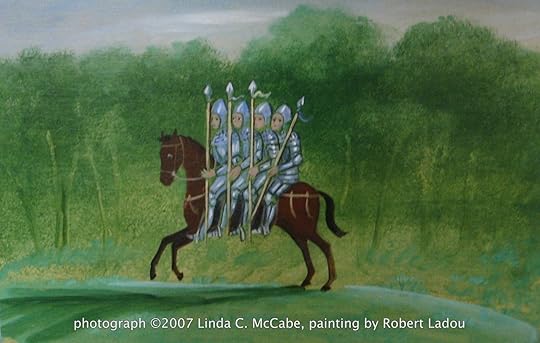 Then in Chantilly, a chateau north of Paris I found a painting depicting those four sons of Aymon riding on the back of Renaud de Montauban's coveted destrier Bayard.