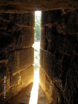 Here is the other side of the same structure and you can see the tile work as well as two "human hamster wheels" used as cranes to lift heavy stones to the top of the building site.