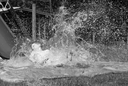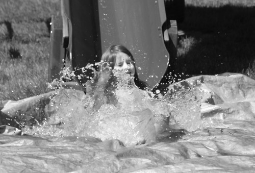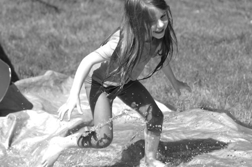 Last year I posted these pictures of Iona and Peter enjoying the water slide. Yesterday, God blessed us with an amazing 80 degree sunny day so naturally this meant more fun in the water. And yes, I am in a (probably short-lived) black-and-white mood. ;)