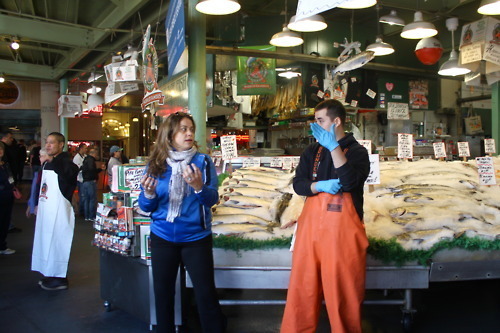 This was by far the funnest element of the market…the famous fish throwing. These guys were fun, involved, friendly, and loud! And they threw fish around the room…I actually came about 5 inches away from being walloped with a quite large flying fish. It was awesome! ;-)