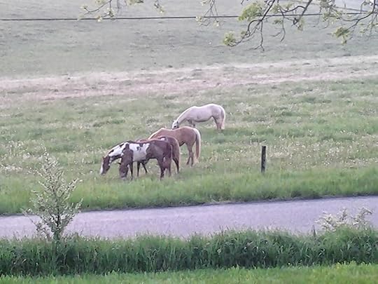Horses. In the fog, At sunset (again, across the street from the in-laws')