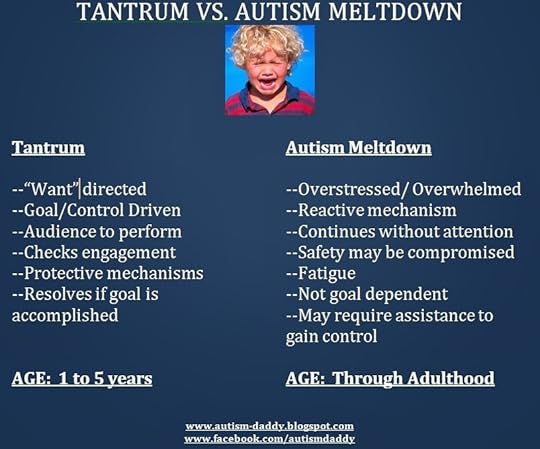 You offered him the right shoe first. They were the Nike’s and he only wears the Converse to school. You didn’t sing the cleanup song while you were putting the breakfast dishes in the sink, or maybe it’s just that he’s never practiced doing these things with you instead of his mom. He’s got ASD *autism spectrum disorder*, and you’ve just knocked him down the emotional equivalent of a steep flight of stairs.