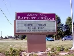 I think you know by now that I write gay romance, right? Usually M/M or male/male? So to have a baptist church named, "Beaver Lick Baptist Church" right down the road from where my paranormal gay romance takes place makes me giggle. Not because of God. Nope. It's the licking of beavers that has me reacting like a twelve year old. That name is another hilarious one I would never in a million years have come up with on my own. Not unless I was writing a farce.