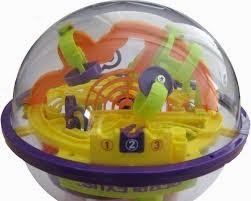 I don't think those things were still for 20 minutes over the 3 days my parents, sister and husband were all here, and they're still hardly out of somebody's hands. We were all instantly addicted. They take a nice clear plastic orb, fill it with random curvy tracks and rails and obstacles, toss in a little ball, and... your challenge? To get it from the start point along the numbered course to the end. You flip, turn, tap, fall off, and start all over again.