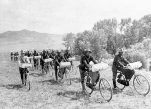 At the end of the nineteenth century, bicycles were all the rage. The bicycle was as popular with members of the army as it was with the general public. In 1894, roughly half the personnel at Fort Missoula had bicycles and the fort was holding informal bicycle drills, which included members of the 25th Infantry.