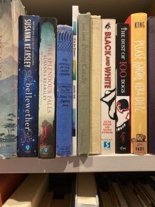 **The downstairs shelves that hold fiction, not the ones in my study.