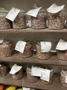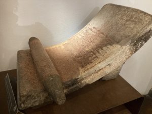 During our visit to Antica Dolceria Bonajuta, the artisanal chocolate producer in Modica, our guide emphasized the fact that most modern chocolatiers, who use heat based methods such as conching and tempering to create smooth chocolate with a shiny appearance. By contrast, the Bonajuta chocolate makers still used a traditional “cold-processing” method similar to that used in Mesoamerica. in which cacao beans were roasted on a metate ( a rock grinding stone) that was heated over charcoal and then pounded into a paste.