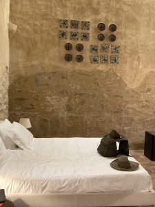 We spent one night in renovated vineyard/ “farm stay” hotel that dated from the eighteenth century. The vineyard operated continuously through World War II, when it was abandoned. It was reopened in 2000. When I asked our Sicilian guide why it had been abandoned, he shrugged and said “So many possible reasons.”