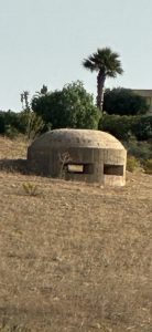 Not surprisingly, World War II was not a focus of our visit. (As I’ve mentioned, several times before, the tour focused on food.) And yet it was never far away. Our guide in Palermo pointed out concrete apartment buildings in the historic district of Palermo— built during a brief period in the 1950s as post war replacements for the baroque-style villas that were destroyed in 1943 when both the Germans and the Allies bombed Sicily. In Siracusa, we learned that Mussolini razed medieval and baroque building to clear a path for his parade through the city. (I’ve not been able to verify this, but there is definitely a swath of ugly post-war concrete buildings through the historic district.*) And German pillboxes scattered the countryside near the coast, much like the Grecian ruins which we saw on many hilltops—a reminder of the past without a specific context.