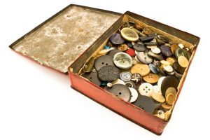 * Today we tend to think about buttons as nothing in particular. Or more accurately, unless you knit or sew, you probably don’t think about buttons at all unless you have to sew one back on your jacket. (A skill everyone should learn, in my opinion.) But historically buttons were a luxury item: made by hand and often from expensive materials. It turns out there was a good reason my grandmothers (and probably yours) kept a button jar. (For that matter, I still have one.)