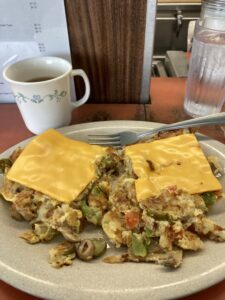 If you are in Burlington Iowa for breakfast, I highly recommend Jerry’s Main Lunch, where their motto is “No great adventure ever started with a salad.” The posted menu is limited, but within minutes of ordering the “regulars” fitted next to us at the counter let us know that there were lots of “secret” variations available. I ordered the original “hot mess”. It was so delicious that I’d have gone back for lunch if we hadn’t been on our way out of town.