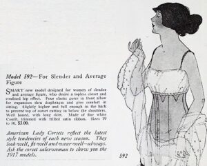 *Although a few enterprising corsetiers, and one ingenious society woman, had created earlier versions of the bra, they did not take off until dressmaker Ida Rosenthal and her sculptor husband created the first commercial bra in the 1920s in response to the new shape demanded by flapper look. A story for another day.