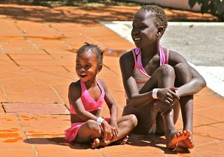 As the tears clear I see that Patricia has successfully pulled her reluctant friend into the center of the pool. The water reaches only to her chest, but still she is tentative; I know that look in her eyes even as her face tries to smile. Within minutes the reserve melts into relief. The pool! We like the pool! And there she is dancing and splashing and laughing with the rest of them.
