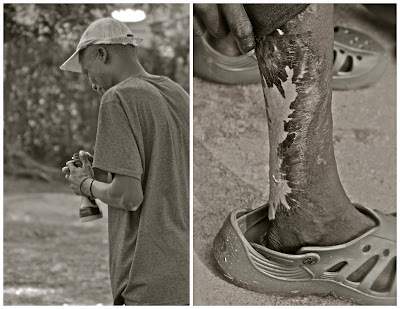 Sometime in April, Christine pulled up in my van. “I have a patient for you,” she said as she opened the back door. I knew he was in bad shape as he tumbled out, and I could feel the vomit surge hot in my throat as I caught that first glimpse of his leg – skin burnt charcoal black, bone exposed, nothing even still alive enough to bleed.